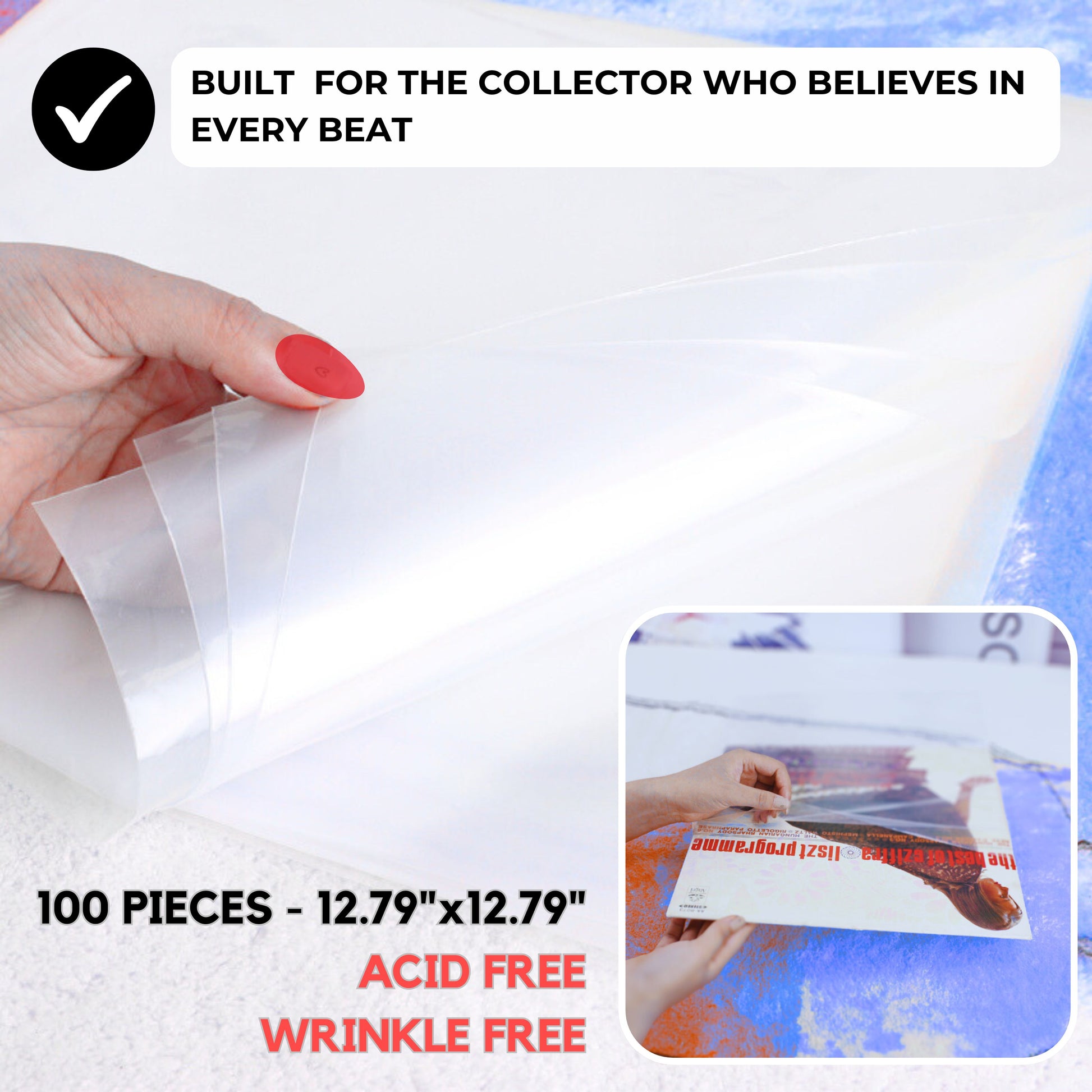 100 Pieces 12.79" x 12.79" Record Outer Sleeves Acid Free 3 Millimeter Thick Clear & Wrinkle Free
