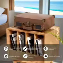 HANDCRAFTED WOOD PLINTH - Featuring an expertly engineered wood cabinet with vibration damping feet that improves record groove tracking and produces a warm resonance-free sound.
