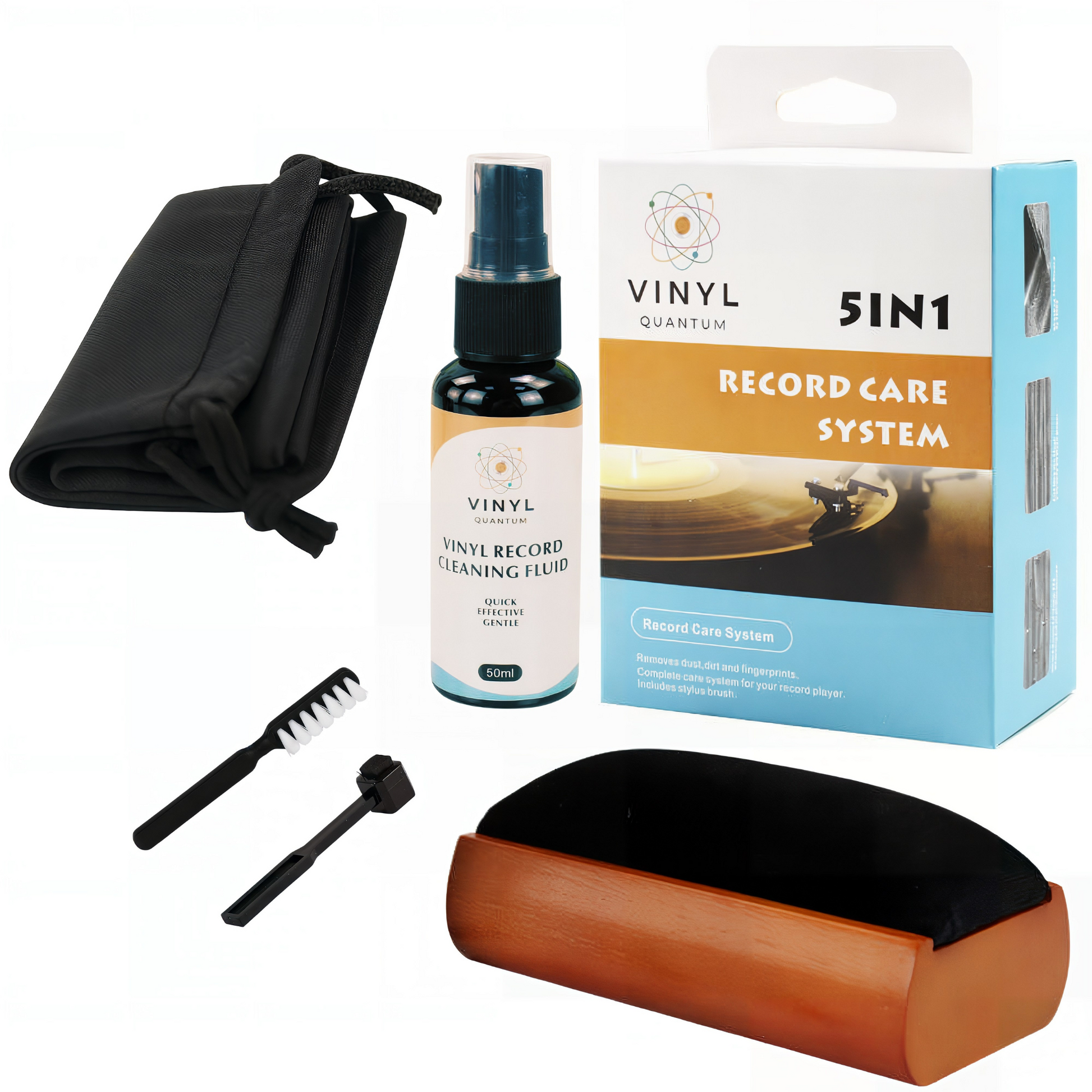 Vinyl Record Cleaning Kit - Complete 5-in-1 - Includes Ultra-Soft Velvet Record Brush, Small Cleaning Brush, XL Cleaning Liquid, and Stylus Brush